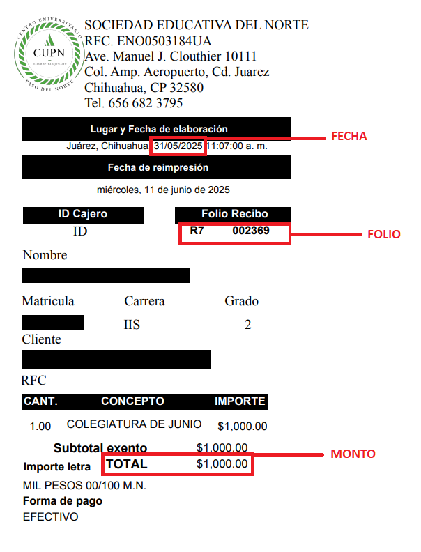 Para facturar, el sistema te pedirá subir una fotografia del recibo para validar la siguiente información del pago:
