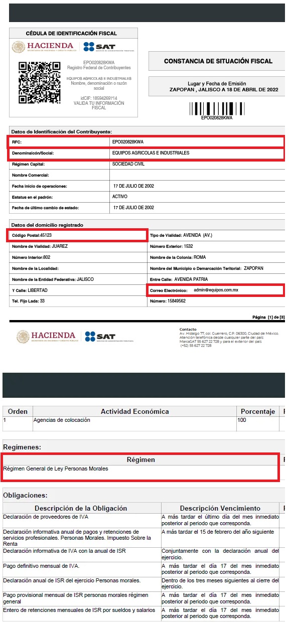 • Revisa que el código postal sea el que aparece en tu constancia vigente.