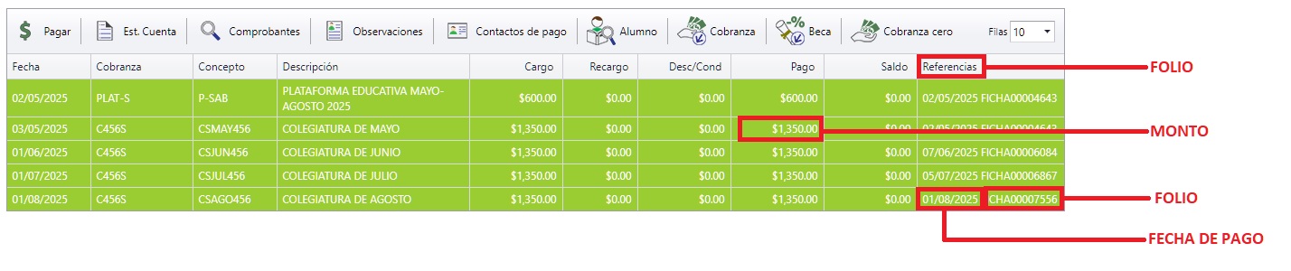 - Escribe folio / referencia, monto y fecha del pago y da clic en Validar.