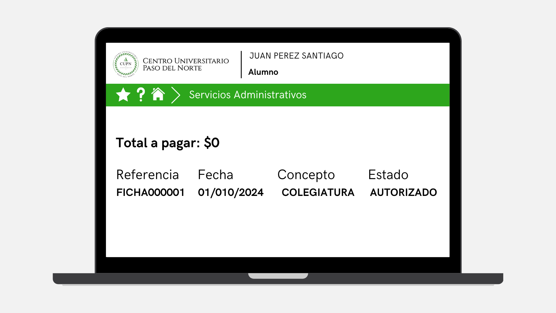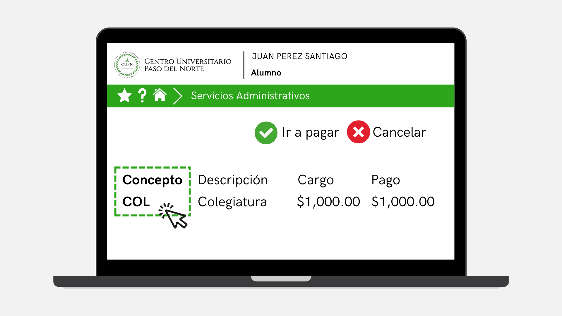 como estado final del pago. Automáticamente se concilia en el estado de cuenta del alumno y desaparece de los conceptos a pagar en línea.