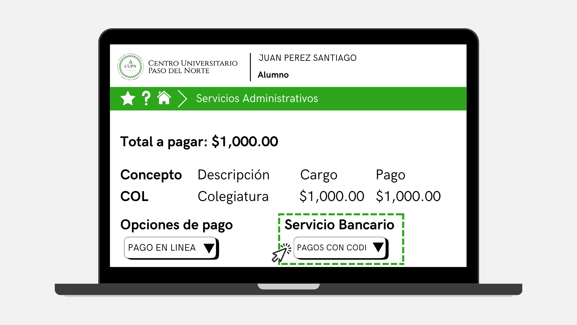 Dentro de la plataforma de Servoescolar Web existen dos maneras de realizar su pago a través de CoDi